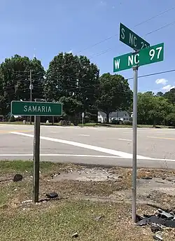 Immediately east of the Nash County line, NC 231 crosses Moccasin Creek which drains into the Buckhorn Reservoir. NC 231 also makes an immediate turn northward, an orientation it largely maintains for the remainder of the route. Approaching Middlesex from the south, the road name changes to Nash Street. NC 231 runs through a largely residential area of southern Middlesex until approaching the central business area of the town. North of the central business district, NC 231 crosses a railroad owned by the Carolina Coastal Railway at an at-grade crossing[4] and intersects US 264 Alternate at Finch Avenue. NC 231 continues north until approaching Rockside Road where it makes a turn to the northeast and exits Middlesex. The highway meets US 264 at a diamond interchange northeast of Middlesex. Beginning at the interchange, NC 231 makes a slow turn to the north, largely paralleling Turkey Creek, located to the east. NC 231 makes a reverse curve beginning at Nade Road, giving the highway a brief easterly alignment. Continuing north for 1.6 miles (2.6 km), NC 231 enters the unincorporated community of Samaria from the south. NC 231 intersects NC 97 in Samaria, before continuing north of the community. North of Samaria, NC 231 crosses Turkey Creek and continues northward. Near Burgess Road, NC 231 makes a turn slightly to the northeast, a direction it follows until reaching US 64. NC 231 meets US 64 at a diamond interchange southwest of Spring Hope. US 64 Alternate begins at the interchange and the two highways run concurrently for 0.2 miles (0.32 km) to the north. The northern terminus of NC 231 is located at a T-intersection with NC 98 and US 64 Alternate west of Spring Hope.[1][3]