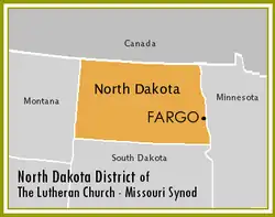 The North Dakota District is one of the 35 districts of the Lutheran Church – Missouri Synod (LCMS), and consists of congregations throughout the state of North Dakota. The North Dakota District includes approximately 76 congregations, subdivided into 6 circuits, as well as 2 preschools and 2 elementary schools. Baptized membership in district congregations is approximately 22,000.[1]