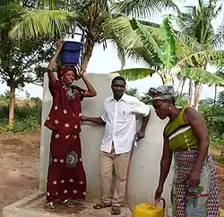Nutritional advice and new cultivation methods.[23] There are also rural development and advisory centers or model farms in Chereponi, Yendi, New Ayoma, Ho, Dambai, and Moyen Mono. Small animal husbandry and new products are propagated.[24] The North German Mission supports many development aid projects with a focus on sustainable agriculture. Protecting the rainforest, reforestation and combating bushfires are all part of this. An important topic: water. Wells are built and equipped with solar pumps. Women's work: Bible studies, literacy courses, training centres, and income-generating projects such as bread baking or handicrafts.