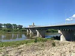 The North Kansas Avenue Bridge is a four lane, automobile and pedestrian crossing of the Kansas River at Topeka, Kansas, U.S. The bridge connects downtown Topeka to North Topeka. It is open to traffic.