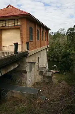 Construction of the pump house by Brisbane firm KD Morris & Sons Pty Ltd reached completion in mid-1957. The pumps were installed by Alfred Snahall Anthon Pty Ltd. When built, the station housed two 100,000 imperial gallons per hour (450 m3/h) pumps and two 50,000 imperial gallons per hour (230 m3/h) pumps together with ancillary equipment. Water could be drawn from the adjacent North Pine River or from the dam to be constructed nearby on Sideling Creek. Water was conveyed from the dam, later to be known as Lake Kurwongbah, via a tunnel containing a 30-inch (760 mm) main that passed under the Petrie to Dayboro Road. The station could also be configured to top up the dam by pumping water from the North Pine River. The pumping station cost around £86,000.[1]