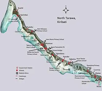 - ^ a b c "5. North Tarawa" (PDF). Office of Te Beretitent - Republic of Kiribati Island Report Series. 2012. Retrieved 28 April 2015.