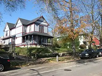 North Washington Street Historic District is a national historic district located in the city of Bloomington of Monroe County, Indiana. The district encompasses 35 contributing buildings and 6 contributing structures in a predominantly residential section of Bloomington. It developed between roughly 1870 and 1929, and includes notable examples of Queen Anne, Classical Revival, and Bungalow/American Craftsman style architecture. Located in the district is the separately listed Morgan House. Other notable buildings include the Showers-Graham House (c. 1905), Showers-Myers House (c. 1900), Teter House (c. 1913), and Washington Terrace Apartments (1929).[2]