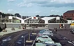 The station was chosen by British Rail for complete rebuilding in 1965–66 to designs by the architect Ray Moorcroft, as part of the electrification of the West Coast Main Line between Euston and Liverpool.[41][39][27] The Victorian station was demolished to be replaced by new structures which were described as "three cowsheds bolted together"[42] and as being of "questionable architectural merit".[30] The station layout remained unchanged: three long through platforms and a number of terminal bays.[43][30] Standard colour-light signalling was installed in the area but control was not centralised.[43] The current was switched on for the first time between Hillmorton Junction to Northampton on 6 June 1965 for insulation tests, with steam locomotives being withdrawn from the area on 27 September 1965.[41]