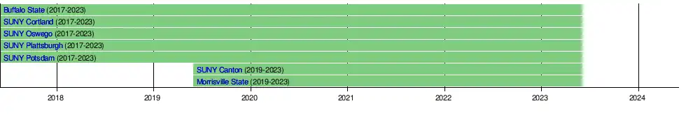 | State University of New York at Plattsburgh | Plattsburgh, New York | Cardinals | 1889 | Public | 6,358 | 2017 | |