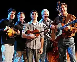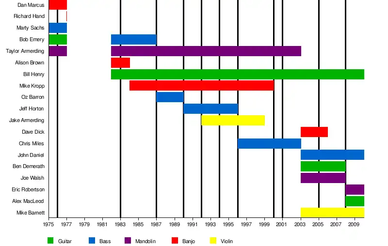 For part of its history Northern Lights performed as a quartet and hired guest fiddlers such as Alison Krauss, Matt Glaser or Vassar Clements for recording sessions.[4] Jake Armerding started to play with the band occasionally at the age of 12 (in 1990), joining the band full-time 2 years later. The band recorded their two highly acclaimed records with Jake, Wrong Highway Blues in 1994 and Living in the City in 1996. A review of Living in the City in the Toronto Star labeled the group "the finest of modern bluegrass groups".[5] Jake left in 1999 to pursue his own music; Mike Kropp left in 2000 and Taylor Armerding left in 2003. These were the most significant changes to the band line-up to date. Bill Henry took over the lead role and the band recorded New Moon and their last album, One Day in 2008.[6] [7]