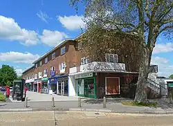Each New Town neighbourhood was to have a "neighbourhood centre" with shops, one or more churches, a pub, a primary school and a community centre.[22][23] Work started on Northgate's in 1952[8] and the 13 shops were completed in 1953.[24] Northgate suffered from the same problems and inconveniences in its first years as the other early neighbourhoods. No pavements were provided; streets lacked lighting and were either dusty or muddy; and potholes were common.[25] There were also design errors at the main shopping parade: the pillar box was erected outside a chemist's shop instead of the post office, and all of the flats above the shops were mistakenly given the same door lock and key.[26][27]