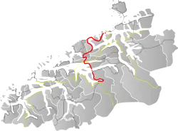 County Road 64 (Norwegian: Fylkesvei 64) is a 126.2-kilometre (78.4 mi) two-lane highway which runs between the towns of Kristiansund and Åndalsnes in Møre og Romsdal county, Norway. It branches from National Road 70 in Kristiansund, runs through the Atlantic Ocean Tunnel, across the island of Averøya, and across the Atlantic Ocean Road to Eide Municipality. It continues to Årø in Molde Municipality via the Tussen Tunnel, then heads under Fannefjorden in the Fannefjord Tunnel, across the island of Bolsøya then over the Bolsøy Bridge to the Skåla Peninsula. It then crosses Langfjorden on the Åfarnes–Sølsnes Ferry, and enters Rauma Municipality. It intersects with the European route E136 highway in the town of Åndalsnes.