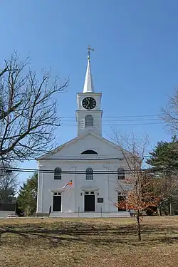 The Norwell Village Area Historic District encompasses the village center of Norwell, Massachusetts. It is centered on the town common, first laid out in the 1640s, around which a number of public buildings are located, and radiates away along Main, Central, West, River, and Dover Streets. There are 34 buildings in the district, predominantly residential and representing a cross-section of architectural styles from the 18th to the early 20th centuries. Prominent buildings include the 1830 First Parish Church, the 1874 Italianate-style James Library building, and the 1934 Colonial Revival Cushing Memorial Town Hall.[2]
