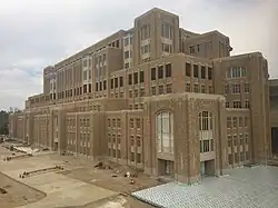 In January 2014, the university announced a $400 million enhancement of the stadium, the Campus Crossroads project. This expansion features three 8-story buildings, on the west, south, and east sides of the stadium. The expansion added more than 750,000 square feet (70,000 m2) of teaching, research, and performance space. The enhancement added new premium stadium seats. The three buildings are called the Duncan Student Center on the west, O'Neill Hall on the south, and Corbett Family Hall on the east.[39] The project was completed in January 2018. The project was designed by the SLAM collective, with HOK design firm as a consultant. Barton Malow served as the design-build contractor.[40][41][42][43][44]