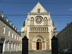 The church was then in a neogothic style and its architect was Abbé Tournesac.[3] The cornerstone of the church of Notre-Dame de Sainte-Croix was blessed by Monseigneur Jean-Baptiste Bouvier, bishop of Le Mans, on March 30, 1842, in the presence of priests, brothers, and students of Sainte-Croix. The church was consecrated on June 17, 1857, by Cardinal François Donnet, archbishop of Bordeaux, with the presence of nine other bishops and of Dom Prosper Guéranger, Abbot of Solesmes.[2]