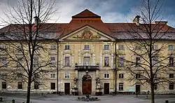In the late 1920s, the mansion was bought by the local authorities, and in the 1930s it was transformed into a psychiatric hospital run by the Slovenian regional government. Most of the costly interior decorations were removed from the manor and placed in the National Museum of Slovenia. After the armed forces of Nazi Germany annexed Lower Styria in 1941, the 390 patients of the institution were transported to the Hartheim Euthanasia Centre near Linz, where they were killed.[1] After the Second World War, a memorial plaque was placed near the building to commemorate the incident.
