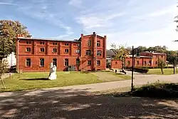 On September 1, 1939, the day Germany invaded Poland, causing World War II, the Germans murdered the local Polish customs inspector.[3] The town was then annexed by Nazi Germany. During the war, a subcamp of the Stutthof concentration camp was operated by the Germans in the town.[4] One of the places where the Germans used the forced labour of Stutthof prisoners was the train station, where there is now a memorial plaque. After the defeat of Nazi Germany in the war in 1945, the town again became part of Poland.