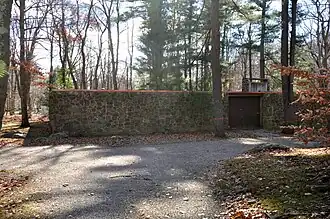The Noyes House is an historic home on Country Club Road in New Canaan, Connecticut. Designed in the International style of architecture by Eliot Noyes (1910–1977) and built in 1955 by Borglum & Meek of Wilton, Connecticut. It was the second New Canaan house that Noyes designed for his own family to live in. The first one no longer exists. The house is a single story structure with a courtyard plan. One rectangular module houses bedrooms, while another houses the living areas. The two are separated by an open courtyard, but joined by concrete walkways covered by the flat roof of the house. The north and south walls are fieldstone, while the east and west walls are banks of floor-to-ceiling glass, separated by wood and steel columns.[2][3]