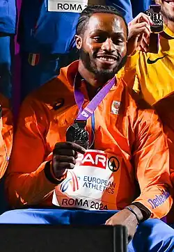 He won a silver medal at the 2024 European Athletics Championships in Rome as part of the Dutch team in the 4 x 100 metres relay, in June 2024.[6][7][8] He competed in the men's 4 x 100 metres relay at the 2024 Paris Olympics.[9]