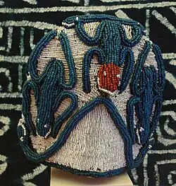 Cap of the Nso people, beadwork on raffia fiber (Linden-Museum, Stuttgart, Germany)