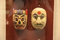 Nuo theatre is a direct and important expressive medium of Nuo culture. Other forms of representation of Nuo culture include Nuo dance (傩舞/儺舞), Nuo song (傩歌/儺歌), Nuo sacrifice (傩祭) and Nuo ceremony (傩仪/儺儀) and others. The unique symbol of Nuo theatre, the masks, are considered a treasure of Chinese folk art.[5]