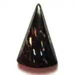 Nuummite is usually black in colour and opaque. It consists of two amphiboles, gedrite and anthophyllite, which form exsolution lamellae that give the rock its typical iridescence. Other common minerals in the rock are pyrite, pyrrhotite and chalcopyrite, which form shimmering yellow bands in polished specimens.
