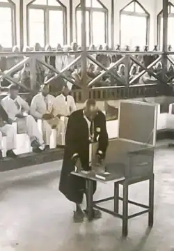 The museum building was built in 1924, but it began to be used in 1925 to settle common law cases.[1] The intention with creating this building was to centralize the cases in a customary system of justice in the Colony of Kenya.[2] An additional hall was built due to the increase in cases, the reason for this is because the courtroom was unable to handle so many cases, civil cases were held in the first courtroom while criminal cases were held in the second courtroom.[3] In the 1970s, after the construction of the Nyeri Law Courts, this building became obsolete and was later used as a meeting hall by the Nyeri Municipal Council.[4] In 1997, control of the building was transferred to the National Museums of Kenya.[5] At that time, the National Museums of Kenya decided to renovate the building.[6] In 2001, the museum was declared national property.[3]