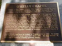 3. ^ Document of the Southern Conference of the United Church of Christ, "A History of O'Kelly Chapel." Andes, K. June 6, 2013.