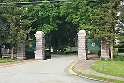 Oakdale was established as a non-profit cemetery by a group of Davenport businessmen as an alternative to the overcrowded Davenport City Cemetery and the for-profit Pine Hill Cemetery.[4] It was incorporated as the Oakdale Cemetery Company May 14, 1856. The cemetery board hired Captain George F. de la Roche, who had finished the design of Oak Hill Cemetery in Washington, D.C. five years earlier, to complete the design and platting of the cemetery.[4][5] It was designed as a rural or garden cemetery, but it transitioned to a landscape-lawn cemetery beginning in the late 19th century.[6] It covers more than 78 acres (32 ha).[7] The first numbered burial at Oakdale was that of three-month-old Mary Larned Allen on September 15, 1857, though several earlier burials were recorded at a later date, some from as early as October, 1855.[8] Some of the graves in the cemetery had been transferred from the overcrowded City Cemetery in the west end. The cemetery is located across Eastern Avenue from the former Iowa Soldiers' Orphans' Home, and it contains the graves of the orphans that died at the home. There are also at least 11 graves of former slaves who escaped to freedom by way of the Underground Railroad, which led to its inclusion on the Network to Freedom.[9]