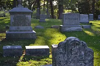 The Oakland Cemetery is a 40-acre (16 ha) public cemetery maintained by the city of Fort Dodge, Iowa, United States. Property for the cemetery was set aside in 1859. It was laid out the same year by Egbert Bagg, an architect and civil engineer from Utica, New York. The graves and monuments are arranged around the natural contours of the hills that overlook Soldier Creek in a natural park-like setting. It is considered a good and rare example of a rural cemetery in North Central Iowa.[2] It has been listed as an historic district on the National Register of Historic Places since 2000.[1]