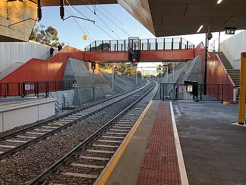 The Seaford railway line travels through the suburb and stops at Oaklands railway station. The station has been redeveloped as a transport exchange by the South Australian Government and Marion Council to improve access to surrounding facilities.[3]