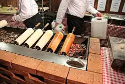 The celebrations begin at nightfall on Christmas Eve (24 December), with family gatherings where traditionally they eat asado, vitél toné, and desserts such as turrón and panetone, which were incorporated into Uruguayan culture due to European Immigration to the country.[49] At the stroke of midnight, people flock to the streets to enjoy fireworks and light firecrackers; meanwhile, Papá Noel (Santa Claus) leaves, next to the Christmas trees, gifts that the children asked for in letters that they left throughout the month in shopping centers and other places where he is seen.[50] There is also an exchange of gifts between family and friends.[51]