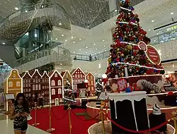 In the mainland, the small percentage of Chinese citizens who consider themselves Christians unofficially, and usually privately, observe Christmas.[59] Many other individuals celebrate Christmas-like festivities even though they do not consider themselves Christians. Many customs, including sending cards, exchanging gifts, and hanging stockings are very similar to Western celebrations.[59] Commercial Christmas decorations, signs, and other symbolic items have become increasingly prevalent during the month of December in large urban centres of mainland China, reflecting a cultural interest in this Western phenomenon, and, sometimes, retail marketing campaigns as well.[60]