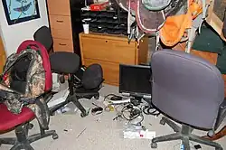 The militants began to vandalize the property,[119] which local community leaders characterized as an attempt to provoke violent confrontation.[120] A video released by the militants showed them inspecting a locked storage room for archaeological artifacts held in agreement with the Burns Paiute Tribe, an Indian nation in Harney County,[121] leading the tribe to ask the federal authorities to block the passage of occupiers to the site.[122][123]