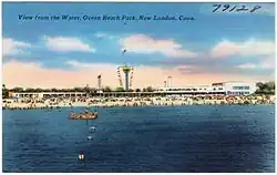 Ocean Beach Park was founded in 1940 by the New London City Council in the aftermath of the 1938 New England Hurricane.[2] After the hurricane left the Ocean Beach property devastated by intrusive sands and ruined homes, the City Council determined that the best use of the property would be to use it as a public beach park.[3] After many years of operation, the beach eventually found itself a highly visited beach and park, with roughly 500,000 visitors annually.[4] Much of the draw of Ocean Beach comes down to its large beachfront and calmer waters, which are safe for children to swim in and visit.