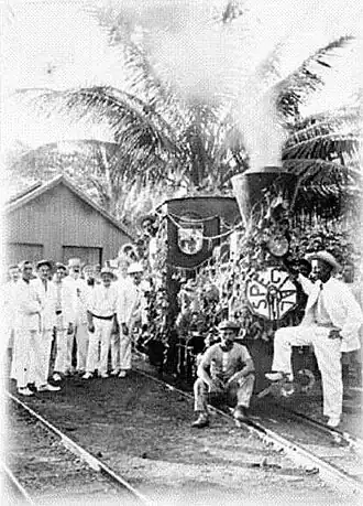 Later, diesel locomotives were used. European passengers were transported in a canopy car and native labourers in an open wagon.[3]
