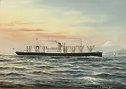 Painting of SS Golden Sun, by H. Shimidzu. Watercolor on Silk.