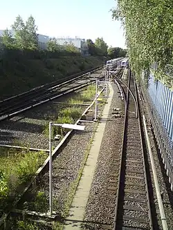 From March to September 2015 a lift was constructed at the station's entrance, and the platform was partly elevated to allow an easier access for handicapped people.[1] On the compound of the freight yard, which had been closed in 1991 and the tracks removed at the end of the 2000s, a car dealer expanded its facilities, including a shopping mall and a car park. The car park was originally planned as a Park and Ride facility, but due to protests and legal proceedings of residents of nearby street of Stockflethweg the car dealer company decided to use it only as a car park for their offered cars.[3] A further Park and Ride facility is projected.