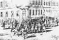 The Bolshevik Piatnitsky who was in Odessa at the time recalls what happened: "There I saw the following scene: a gang of young men, between 25 and 20 years old, among whom there were plain-clothes policemen and members of the Okhrana, were rounding up anyone who looked like a Jew—men, women and children—stripping them naked and beating them mercilessly... We immediately organised a group of revolutionaries armed with revolvers... we ran up to them and fired at them. They ran away. But suddenly between us and the pogromists there appeared a solid wall of soldiers, armed to the teeth and facing us. We retreated. The soldiers went away, and the pogromists came out again. This happened a few times. It became clear to us that the pogromists were acting together with the military."[58]