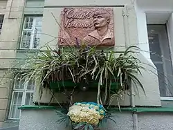 A memorial plaque honoring Kapinos was formally opened on 10 March, at Kulykiv, Kremenets Raion.[9] On 24 August 2014, Independence Day, a monument in Dunaiv honoring the Hero of the Heavenly Hundred was unveiled, featuring his statue.[10][11][9] 2014 saw the naming of a Dunaiiv street in his honor.[12] On 10 March 2016, his birthday, a commemorative plaque in Vinnytsia was unveiled. On his close friend and regional council deputy Volodymyr Bartsyos's suggestion, it was put in his household.[13][9] A memorial plaque was also erected at the building no. 2 of the Ukrainian National Forestry University.[9]