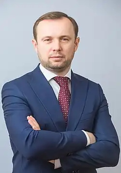 In 2000, he graduated from Vadym Hetman Kyiv National Economic University with a bachelor's degree in International Economic Relations, a master's degree in International investments, and a bachelor's degree in Economic law. In 2002, he completed postgraduate studies at the Institute of world economy and international relations at the National Academy of Sciences of Ukraine. In 2003, he completed his Mini MBA program at McKinsey Institute, Connecticut, US. He studied and became a member of the Association of Chartered Certified Accountants (ACCA), United Kingdom. He is fluent in Ukrainian, English and Russian.[1]