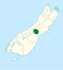 | Distribution of Oligosoma hoparatea on a map of the South Island Known native range