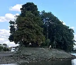 Oliver's Island at low tide in a dry summer; the far channel is dry