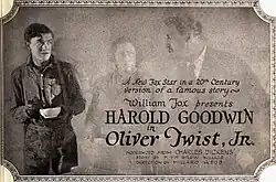 Oliver Twist, Jr. is a 1921 American silent drama film directed by Millard Webb and starring Harold Goodwin, Lillian Hall, George Nichols, Harold Esboldt, Scott McKee, Clarence Wilson, and G. Raymond Nye. It is based on the 1838 novel Oliver Twist by Charles Dickens. The film was released by Fox Film Corporation on March 13, 1921.[1][2][3]