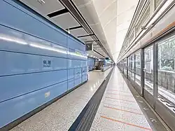Olympic is a station on the Tung Chung line of Hong Kong's MTR. The livery is dodger blue.