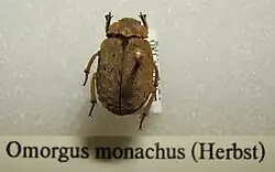 Omorgus monachus is a beetle of the family Trogidae. It is found in the United States from the Great Lakes region to Florida and west to Nebraska, Kansas, Oklahoma and eastern Texas.[1]