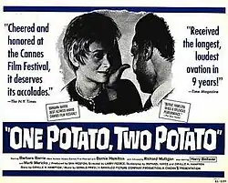 One Potato, Two Potato is a 1964 black-and-white American drama film directed by Larry Peerce and starring Barbara Barrie and Bernie Hamilton. The film centers on an interracial romance and was produced and released at a time which such were very rarely openly conducted in the United States, and violated the prevailing social norms of the time.
