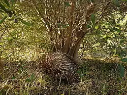 An echidna under an olive tree