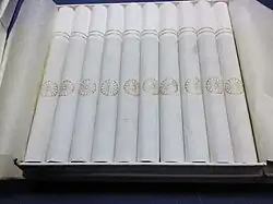 The formal Onshino Tabako system was started in 1933. During the war years, it was included in the supplies of the army and navy, each order prepared by hand. The special cigarettes were even mentioned in a war song called "Sorano Yūshi" (Brave Men of the Skies) in 1939 which portrayed the Battles of Khalkhin Gol. On the packaging of Onshino Tabako was printed a character: 賜, meaning "gift from a noble man,"[6] and the chrysanthemum crest was on every cigarette. The taste of Onshino Tabako was reportedly the same as other cigarettes. According to some men who had tasted it, it was bitter, as opposed to sweet.[7] It was not sold on the market, and was exclusively given to decorated persons, attendants at Imperial parties, visitors to and volunteers of the Imperial House of Japan, and security men of the Imperial Household. The production of special tobacco for the relatives of Emperor Shōwa was discontinued by the order of the General Headquarters of Japan of the allied forces in 1945. However, Onshino Tobako as gifts continued to be produced.