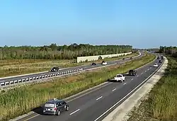In 2001, the Georgian Triangle Area Transportation Study determined that traffic levels along Highway 26 both east and west of Collingwood were exceeding capacity. The Simcoe Area Transportation Network Needs Assessment repeated this analysis the following year.[21] Subsequently, work on a new bypass east of Collingwood began on April 11, 2003.[22] The old route was a dangerous section of road with numerous intersecting side streets and private residences with direct highway entrances, while the bypass is a fully-controlled access four-lane divided highway without any at-grade crossings. The new alignment has the highway veer west in the west end of Wasaga Beach, and from a roundabout with Mosley Street it runs parallel to and south of the old route to a roundabout at Poplar Sideroad, near the eastern town limits of Collingwood. The bypass opened on November 14, 2012.[23] The former route is now known as Beachwood Road from Collingwood to Mosley Street in Wasaga Beach. The remaining section of the former alignment south of Mosley Street has been renamed Lyons Court.[24]