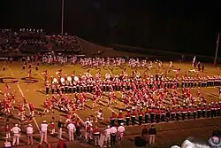 The Opelika High School Marching Band, also known as “The Spirit of the South” meets and practices during the summer and through the fall semester. With rehearsals after school, this ensemble regularly practices and works towards achieving a high level of musicianship and marching technique. This group performs at every football game and competes at marching competitions throughout the year. The marching band averages 200 students per year and consists of the 8th–12th grade students who play wind or percussion instruments along with a visual ensemble made up of majorettes, color guard, and the “Showstoppers” kickline. The “Spirit of the South” has traveled to many different destinations throughout the southeast and the nation. Some of the more recent trips and achievements have been multiple trips to Orlando, Philadelphia, and Chicago in 2011 to participate in the St. Patrick's Day Parade. The “Spirit of the South” has twice performed in Macy's Thanksgiving Day Parade, in 1989 and 1994.