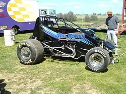 NOS Sprints (National Open Sportsman Sprints), or "Sporties", as they are referred to by racers, are automobiles that have been based on sprintcar chassis but with the use of a cheaper alternative Buick V6 3.8L pre-ecotec engine. NOS Sprints do not use wings or aerofoils and so look like a wingless sprintcar USAC.[2]