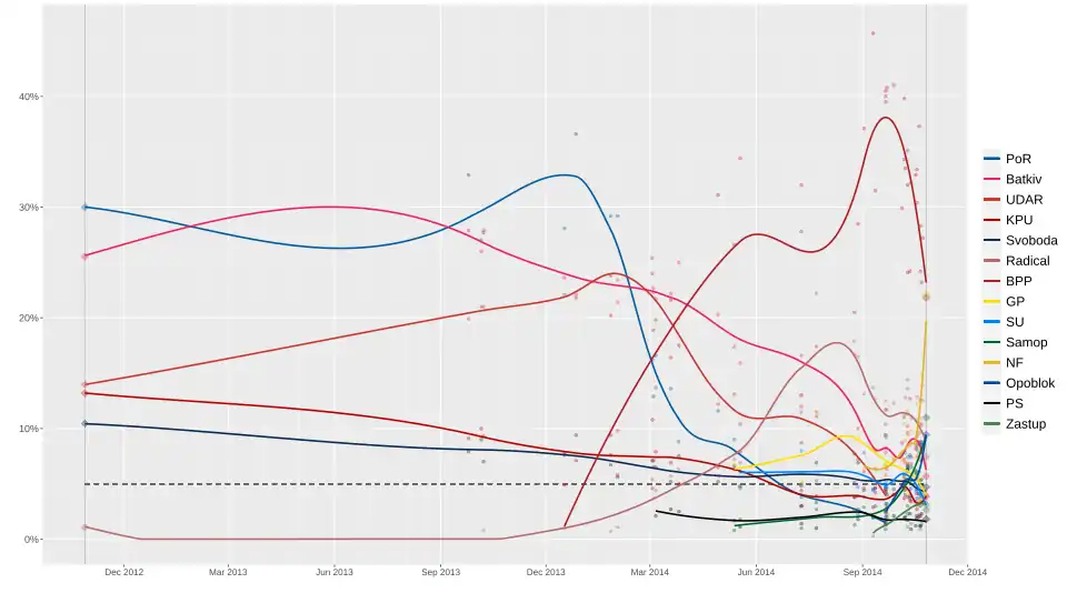 - ^ (in Ukrainian) Poll: Council to pass seven parties, Ukrayinska Pravda (25 July 2014)