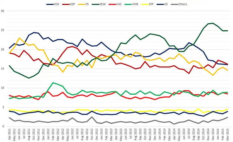 In the run up to the 2015 Finnish legislative election, various organisations carried out opinion polling to gauge voting intention in Finland. Results of such polls are displayed in this article.